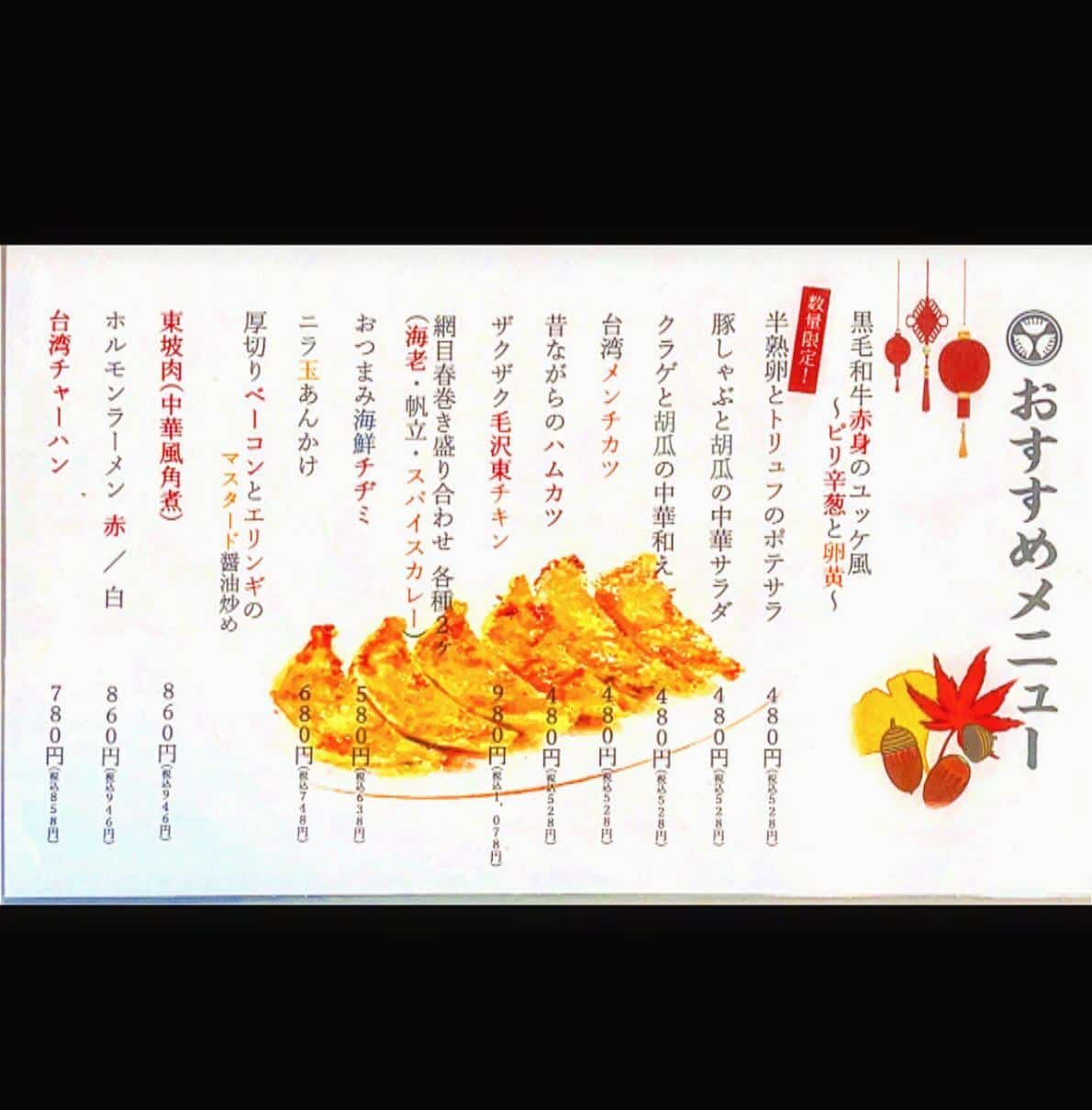 藤が丘餃子工房つづみや 10月のおすすめメニュー @藤が丘/餃子/居酒屋/中華